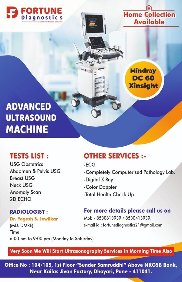 NABH Accredited. Located in one of Pune’s most iconic addresses, Fortune Diagnostics & Path-lab Centre. Established in 2021 , Fortune Diagnostics is the City's premier full-service diagnostic Centre with laboratory, providing expertise in imaging and digital pathology services. Our integrated diagnostic services help doctors personalize patient care to optimally treat disease and maintain health a...
